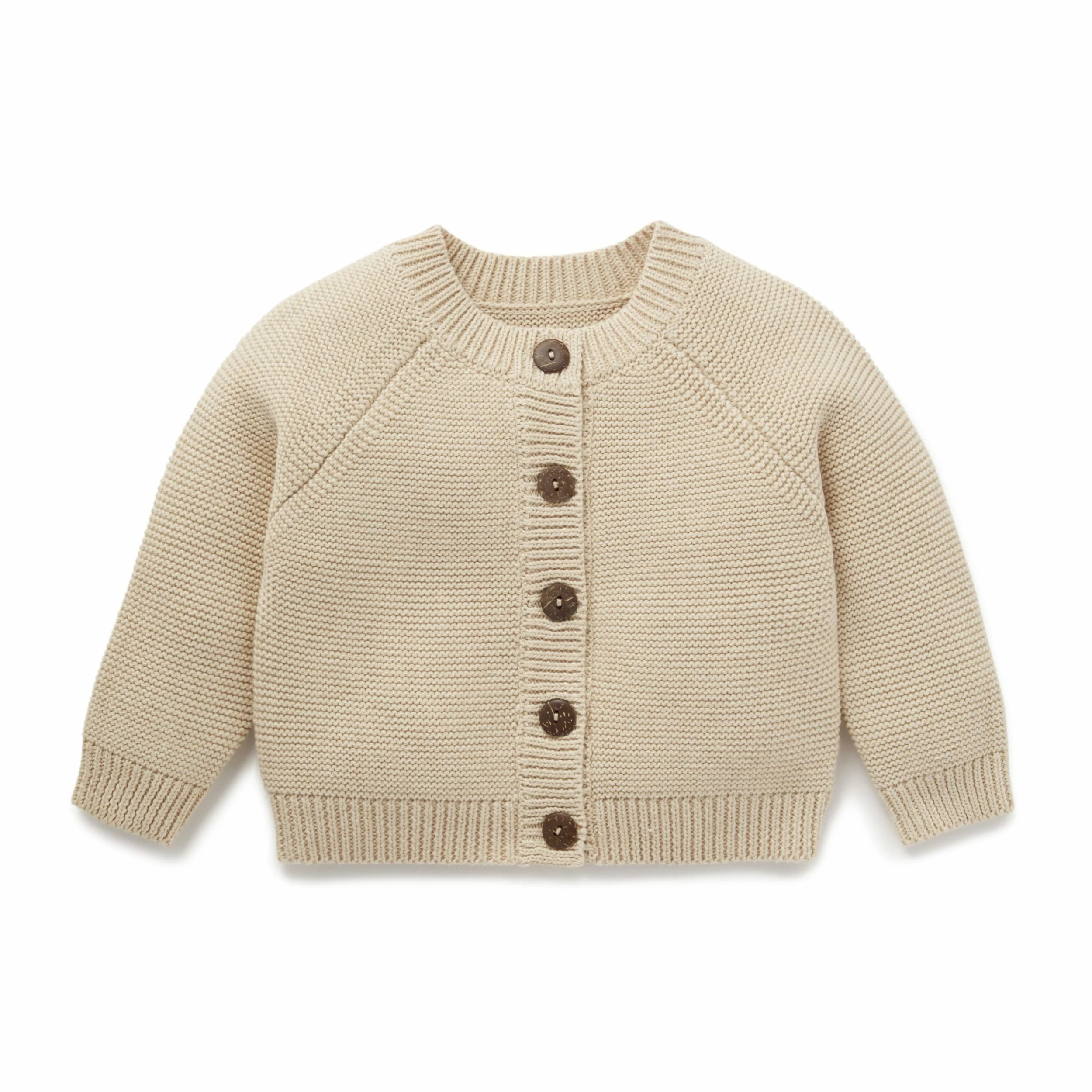 This chunky soft knit cardigan features our signature coconut buttons along the front and is easy to mix, match and layer. Crafted from organic cotton, it is soft and gentle on baby’s sensitive skin.