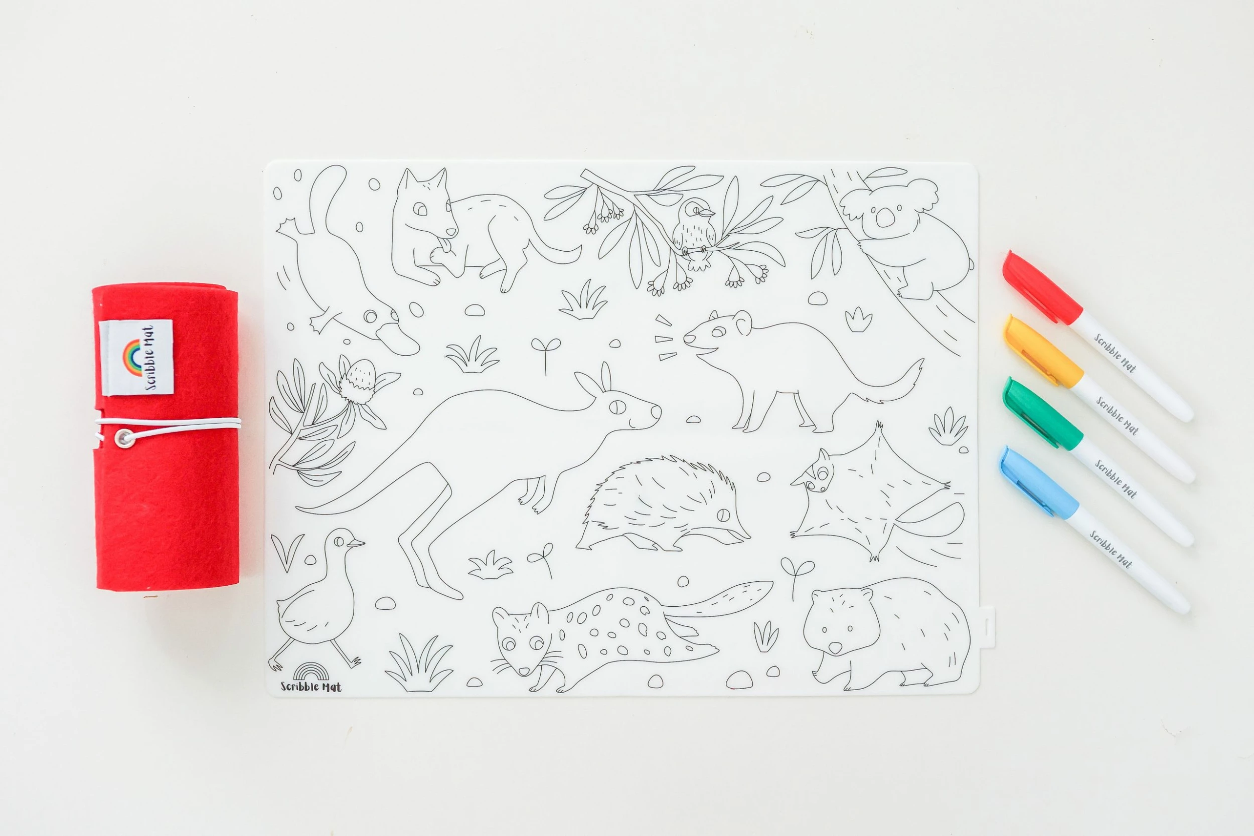 Scribble and wipe clean. The mats wipe clean with a damp cloth or our custom cleaning cloth, available to purchase separately.