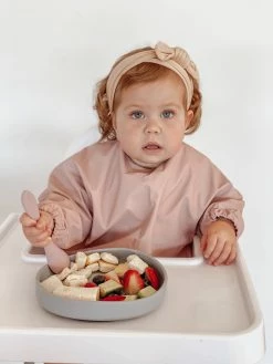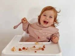 Made from soft food grade silicone, which is BPA Free, non-toxic, and can withstand high heat and freezing cold temperatures, our new spoons are odour and stain resistant, hypoallergenic and SO easy to clean (just like our bibs!)