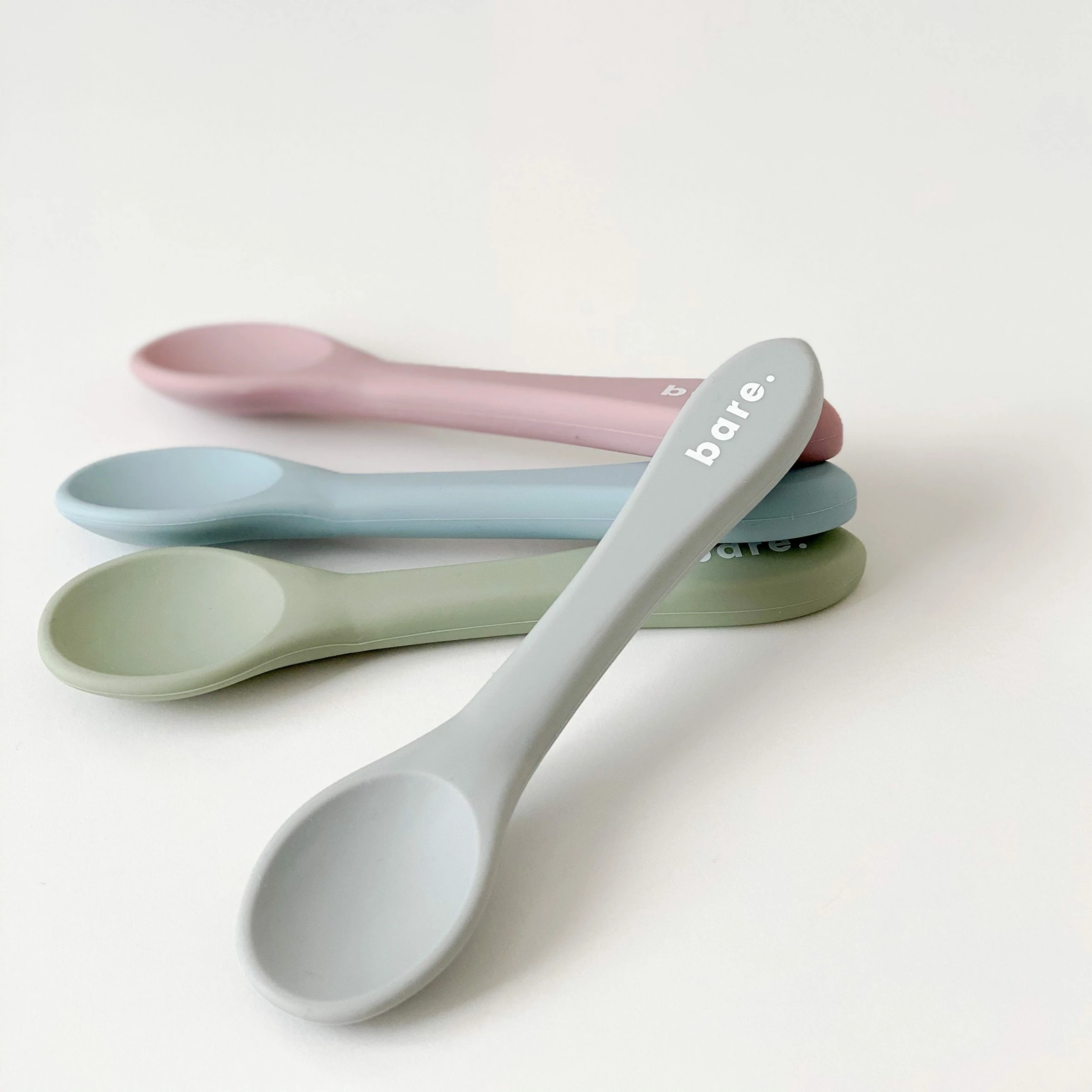Made from soft food grade silicone, which is BPA Free, non-toxic, and can withstand high heat and freezing cold temperatures, our new spoons are odour and stain resistant, hypoallergenic and SO easy to clean (just like our bibs!)
