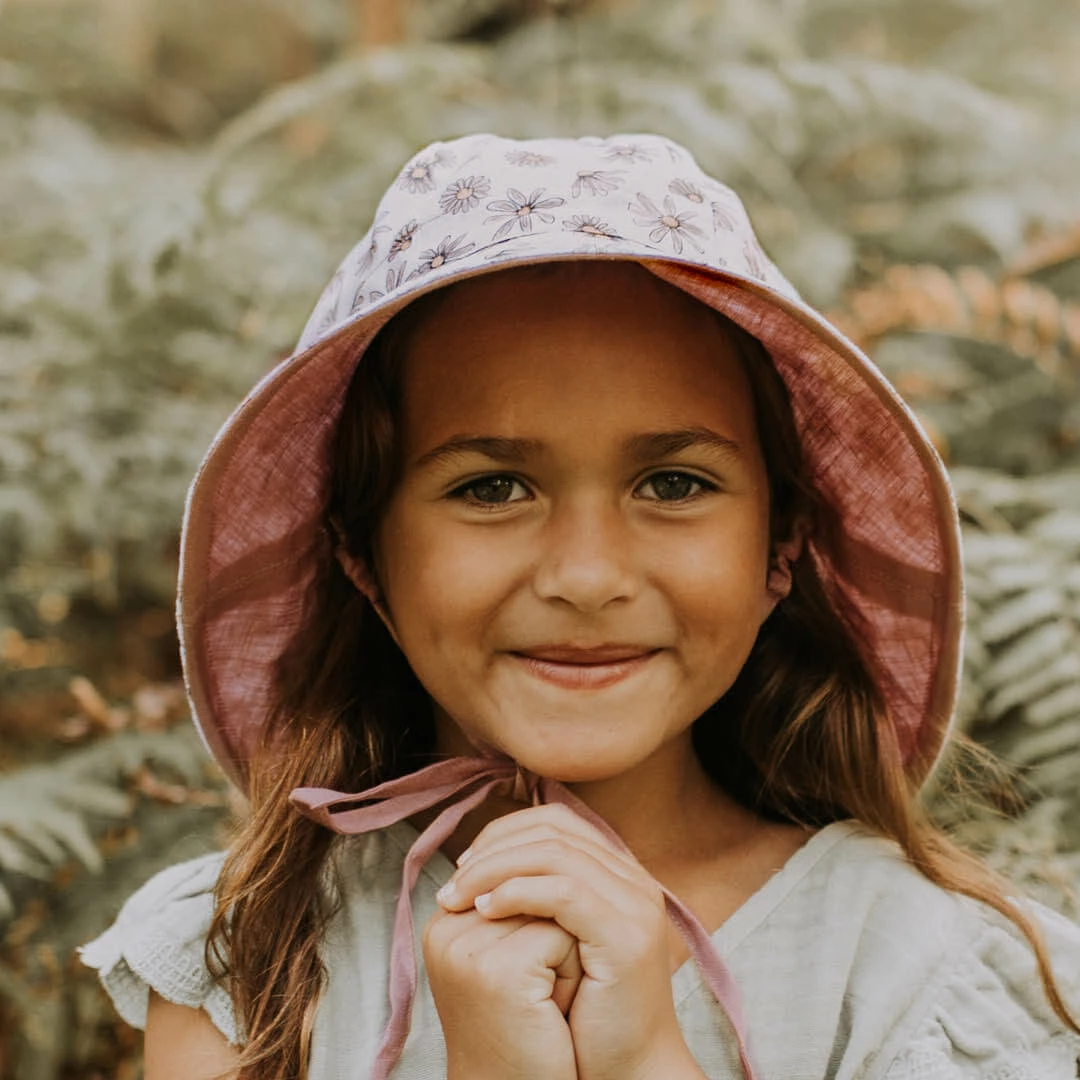 Canât go wrong with a pink floral! These floating daisies have plenty of white space for a more minimal look. Paige has a reverse of our ever-popular Rosa pink, guaranteed to make it a fave of the pink fans! Paige is available in Flap Hat, Bonnet, Panelled Bucket and Ladies Sun Hat.