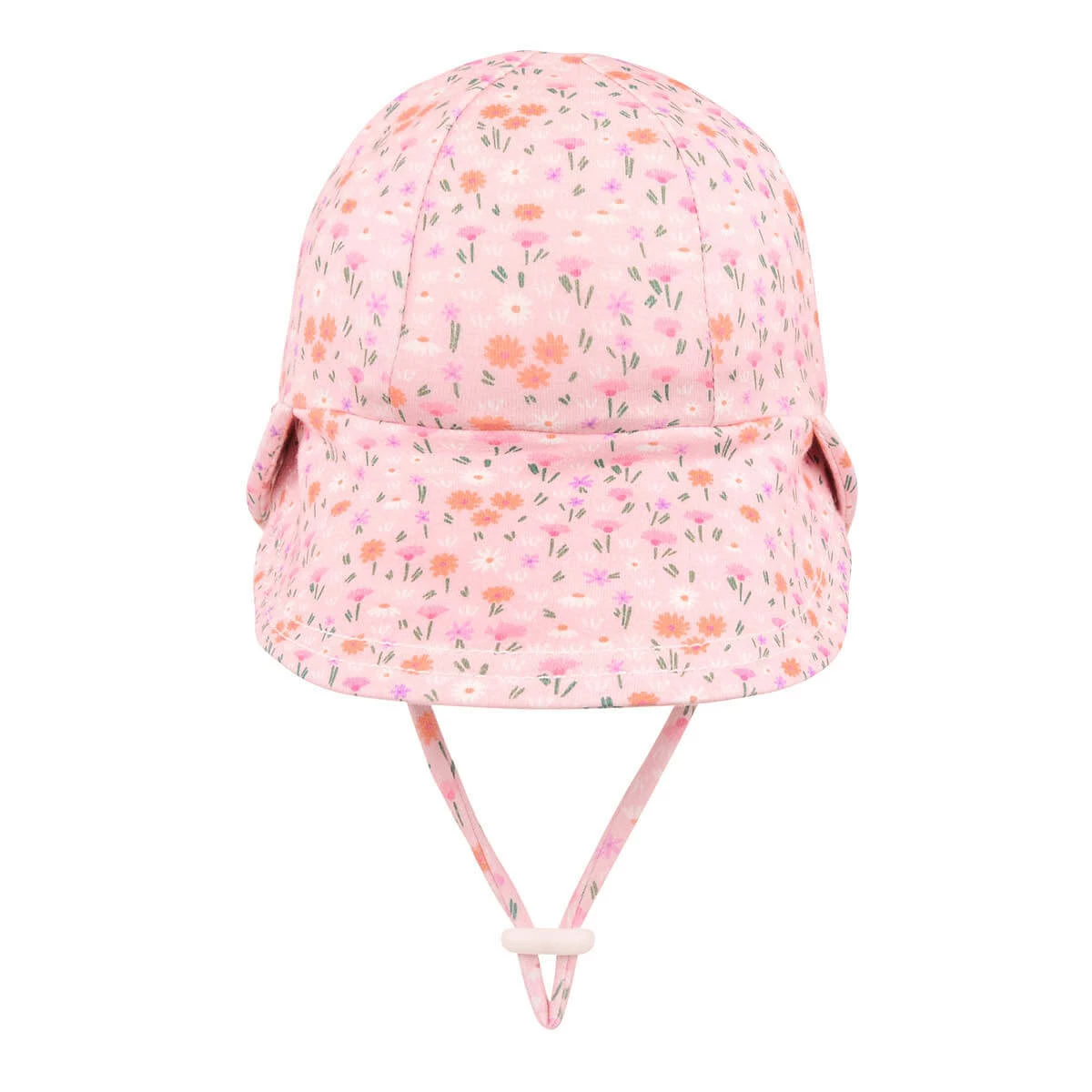 A field of colourful tiny flowers for the flora fans. Shades of oranges, white, green and dark pink on our blush base. Meadow is available in Legionnaire, Toddler Bucket and Ponytail Bucket.