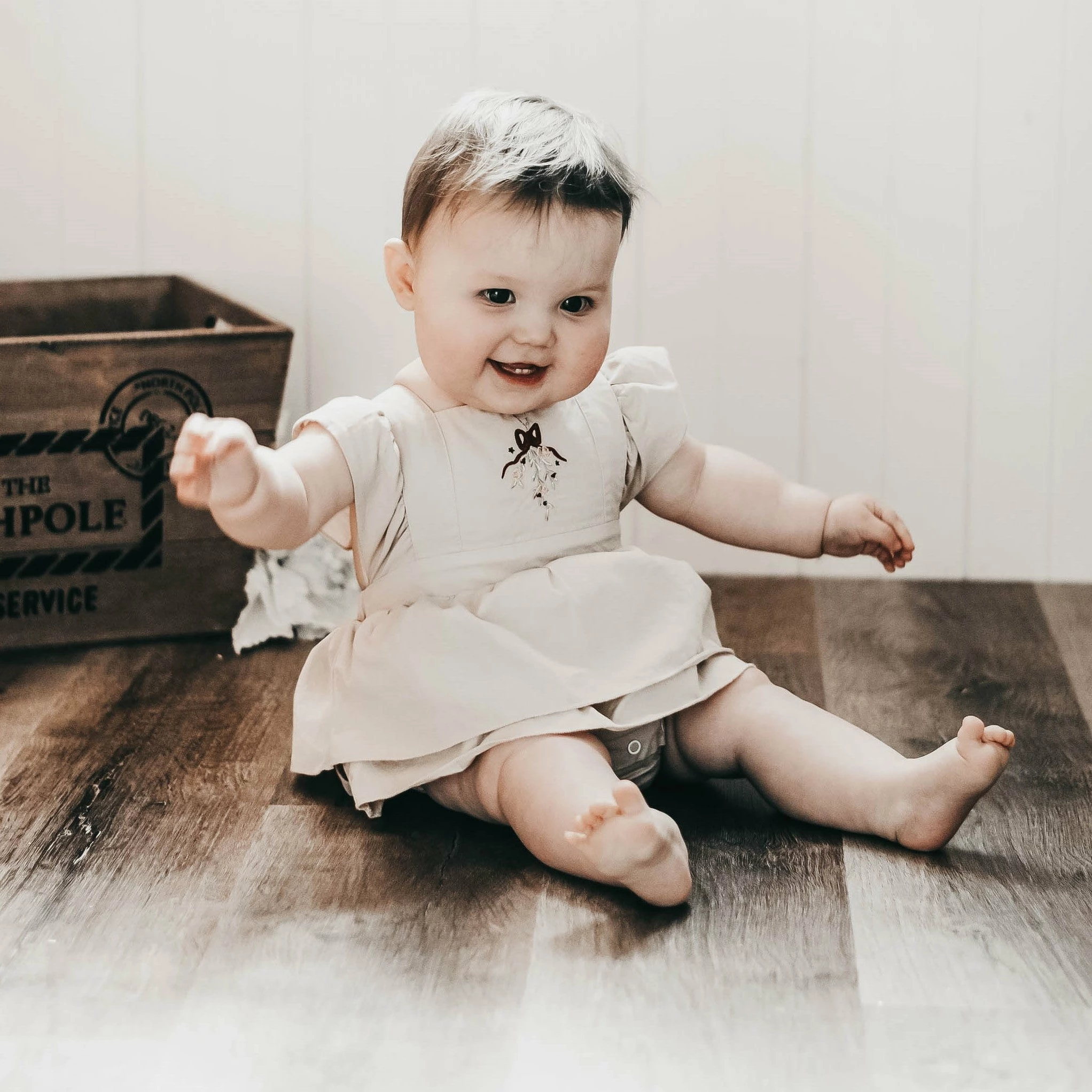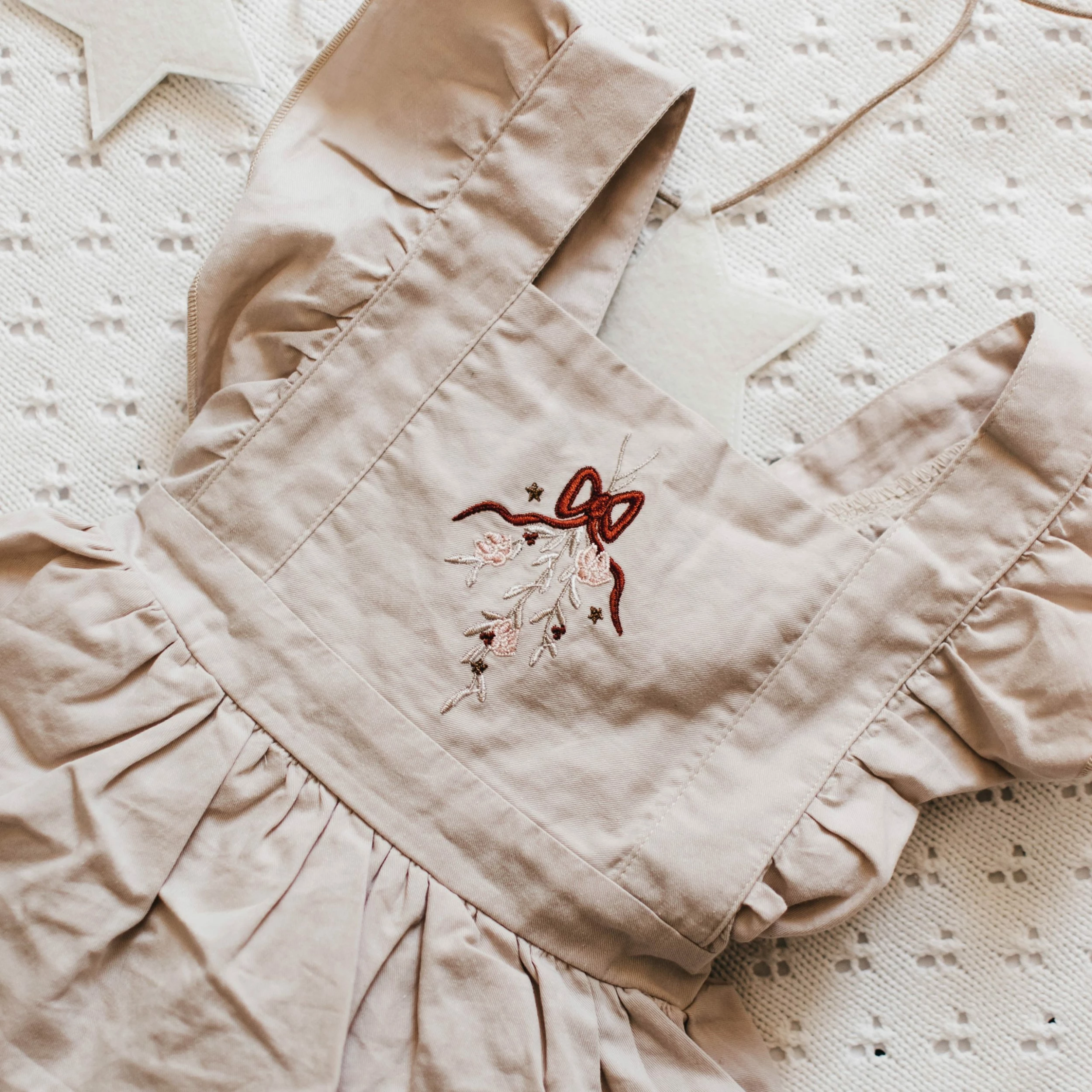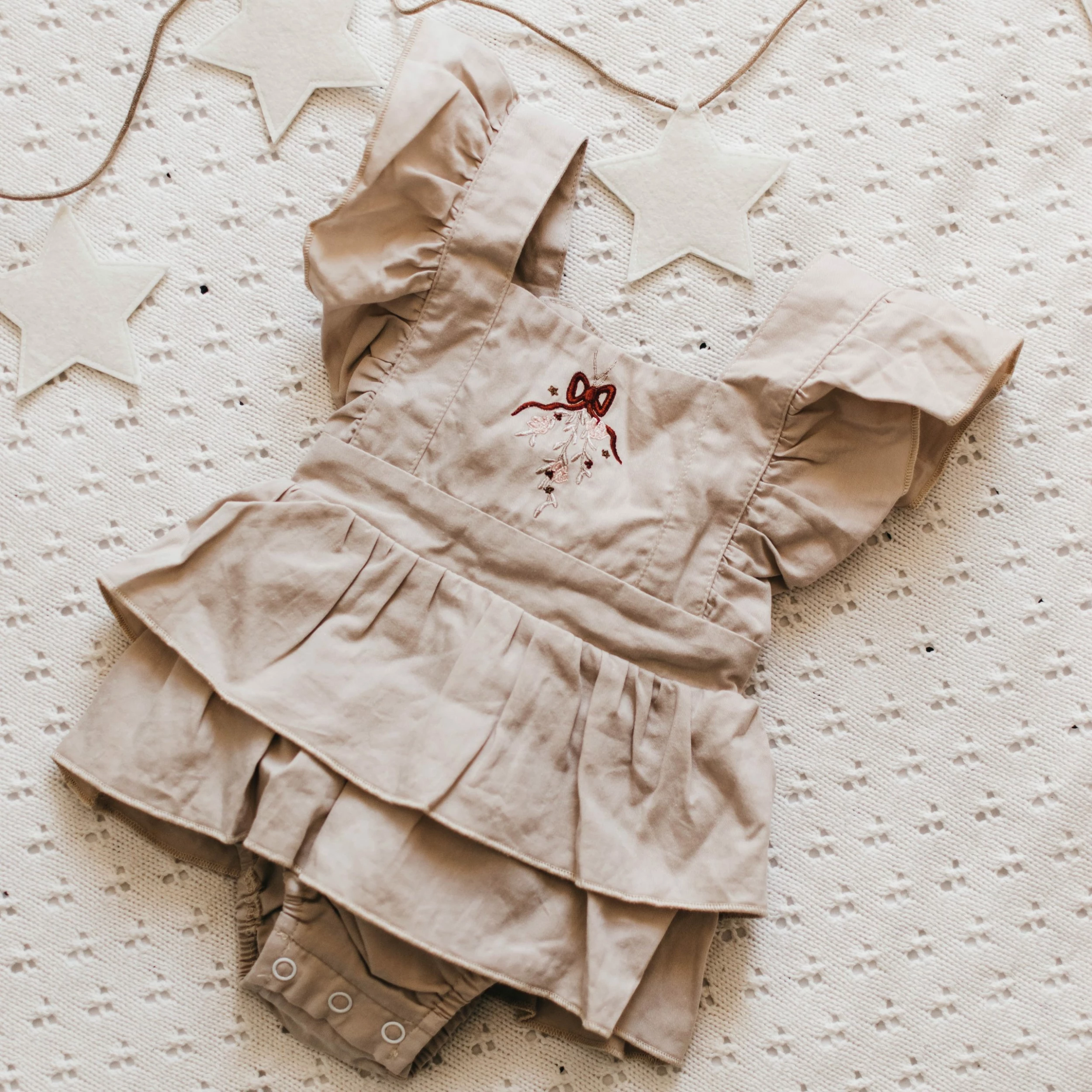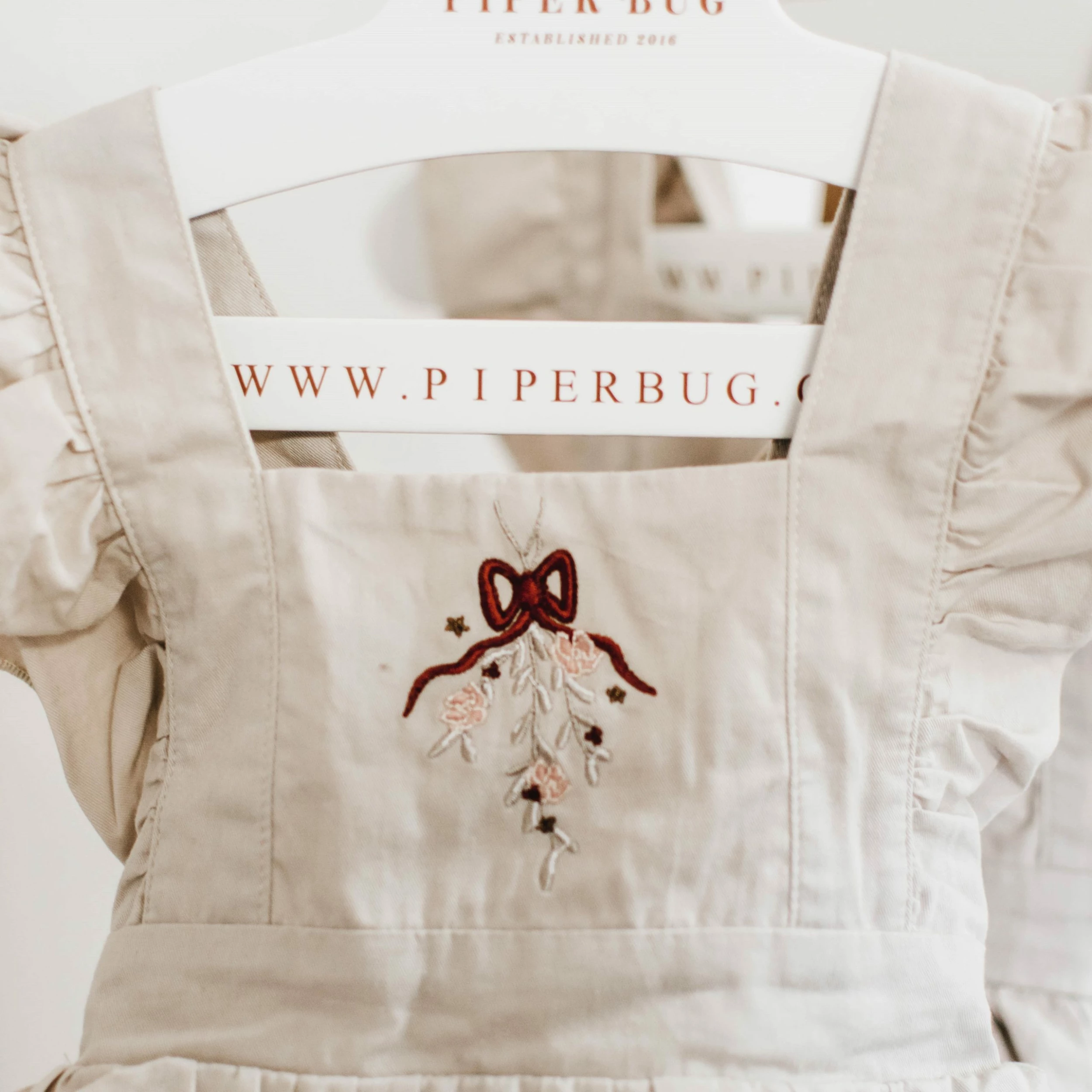 The Fir Playsuit/Dress is the most divine piece for your little girl this Christmas. Made from 100% cotton with embroidered detail, this dress has an adjustable tie back with elastic waist.