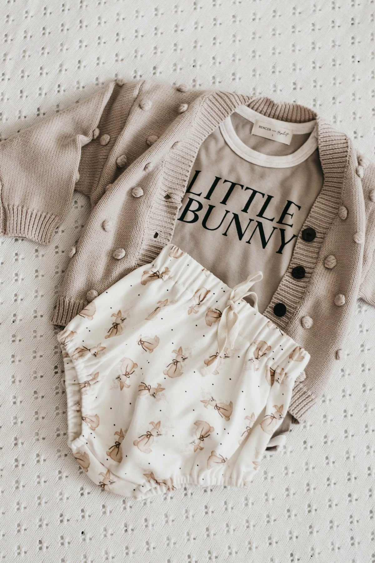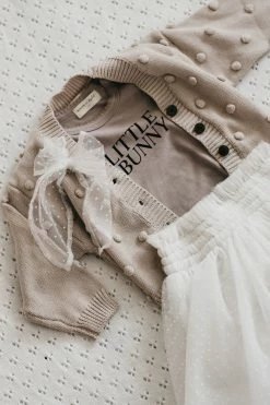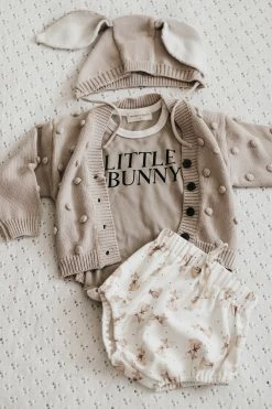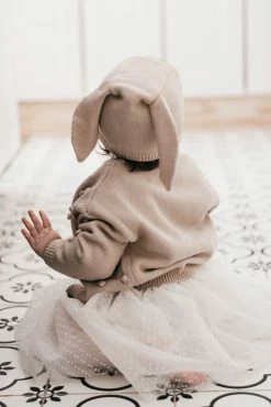 Your little bunnies will look super cute in this snug knit cardigan. The hazelnut cardigan will mix and match with all pieces in the Easter collection. Fit is true to size – however please refer to sizing details in picture.