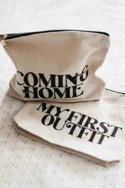 Make packing your hospital bag a breeze with our canvas cotton First Outfit bag. Pack that special outfit and be ready for those unforgettable moments. The perfect baby shower gift!