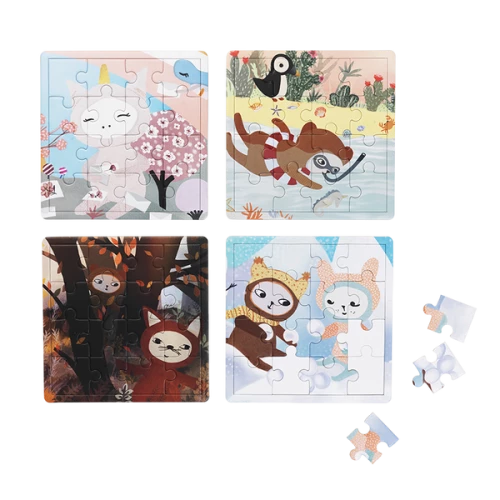 The Puzzle Set contains 4 sets of puzzles with 16 pieces each.