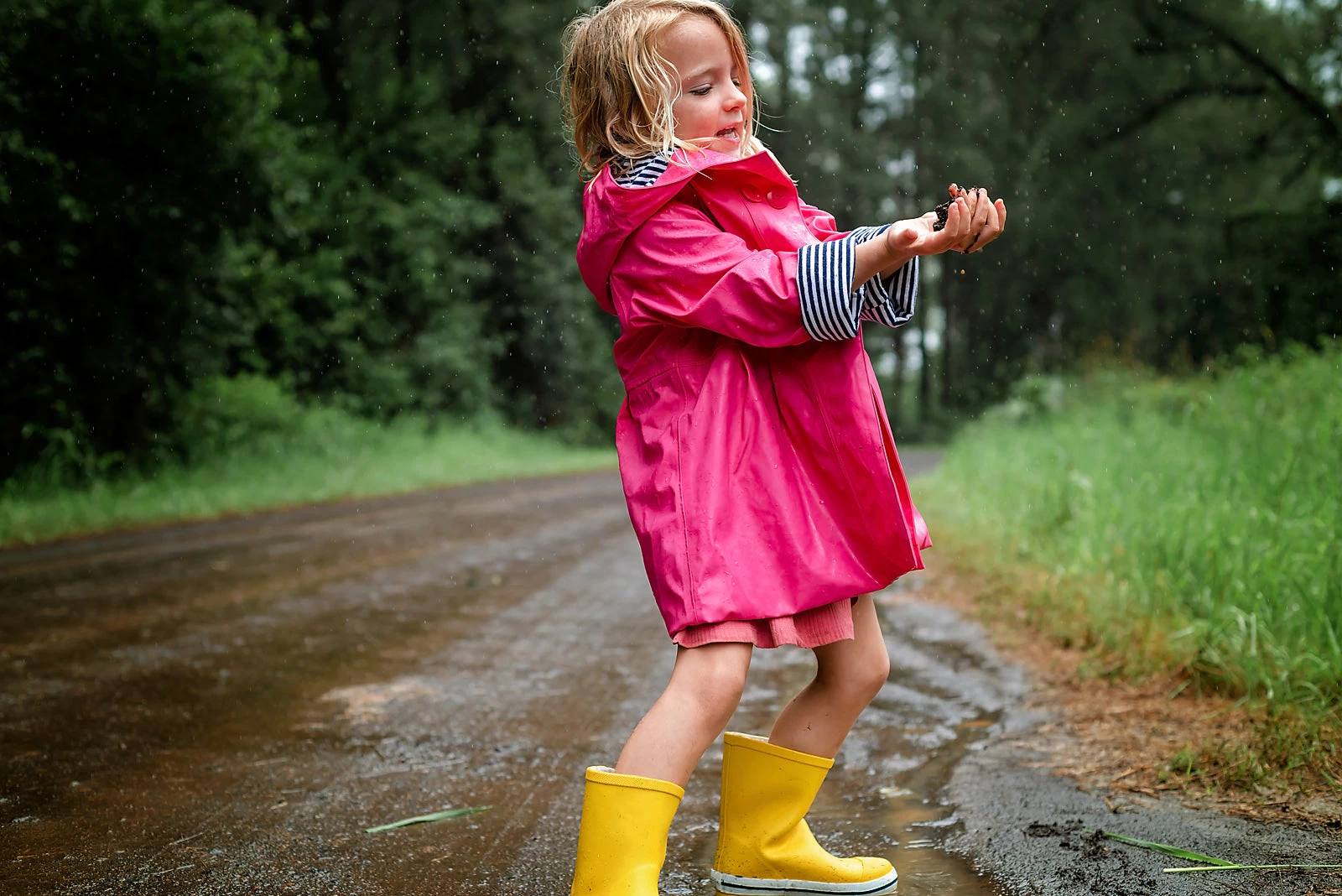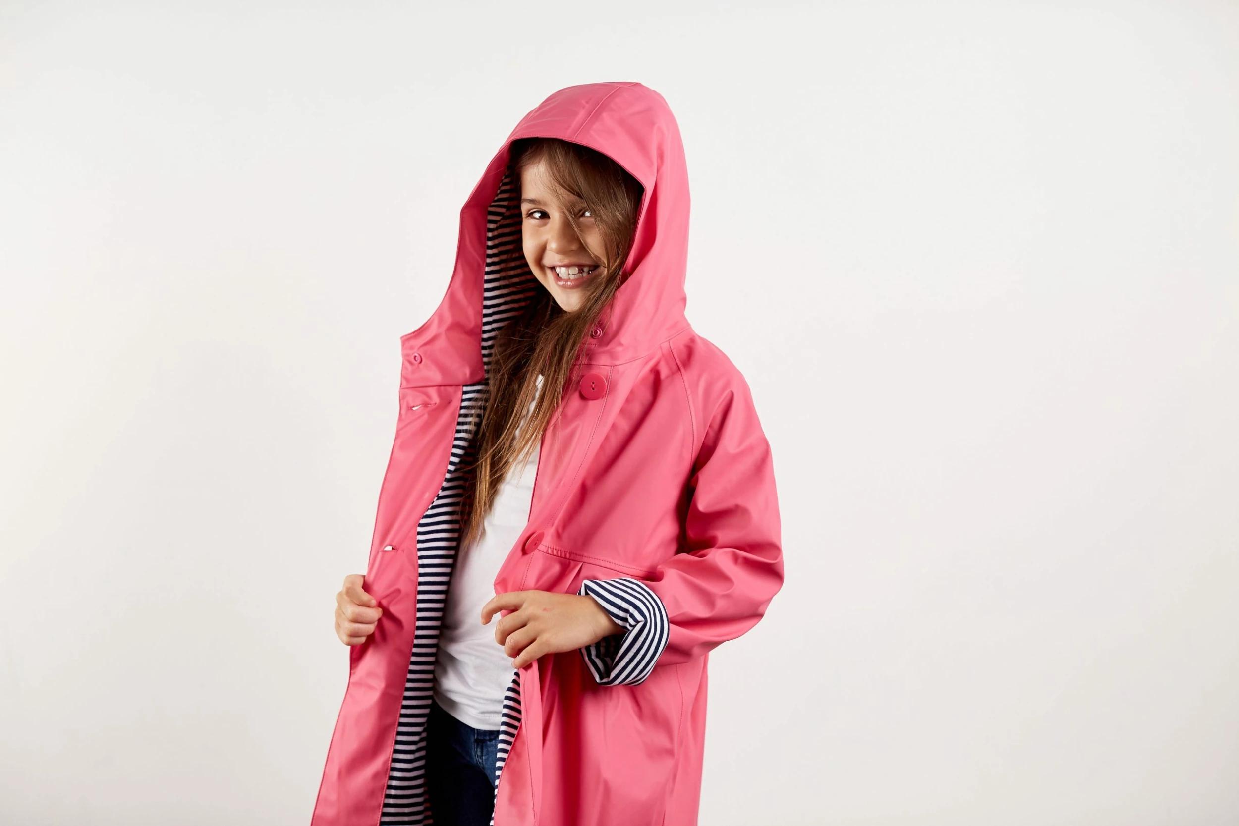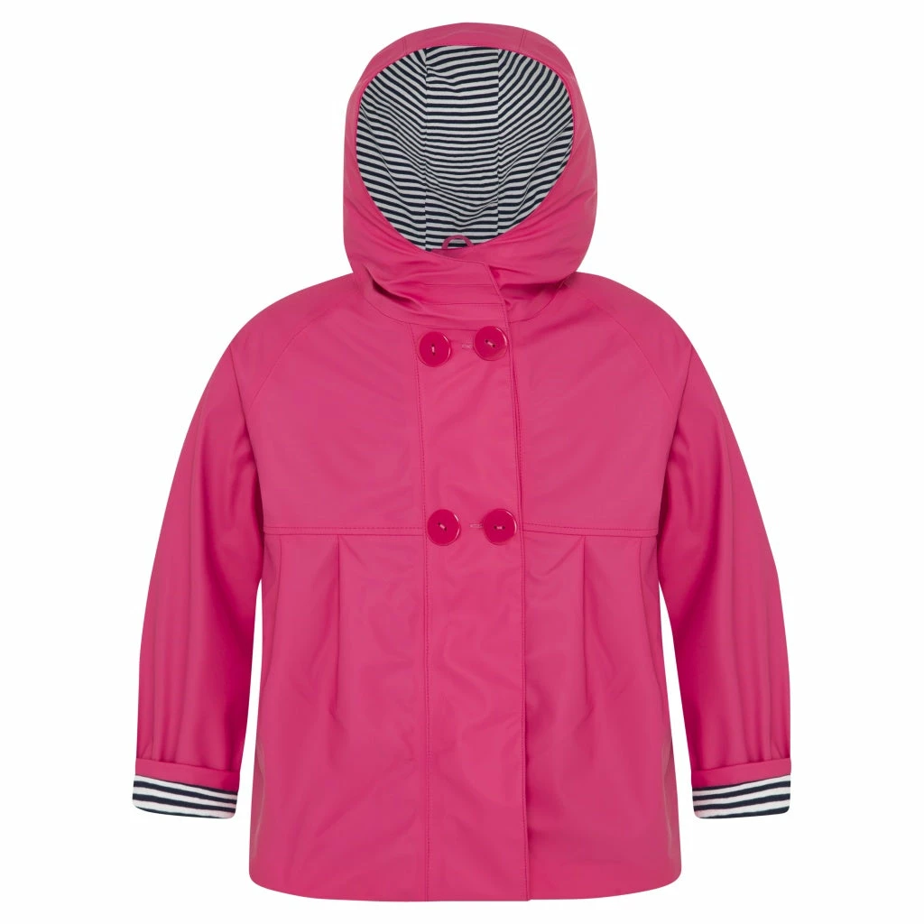 Wind and rain are no match for me! I keep little explorers warm and toasty with generous long sleeves and a protective hood. And, when the rain stops, just roll up my sleeves to get the play under way.