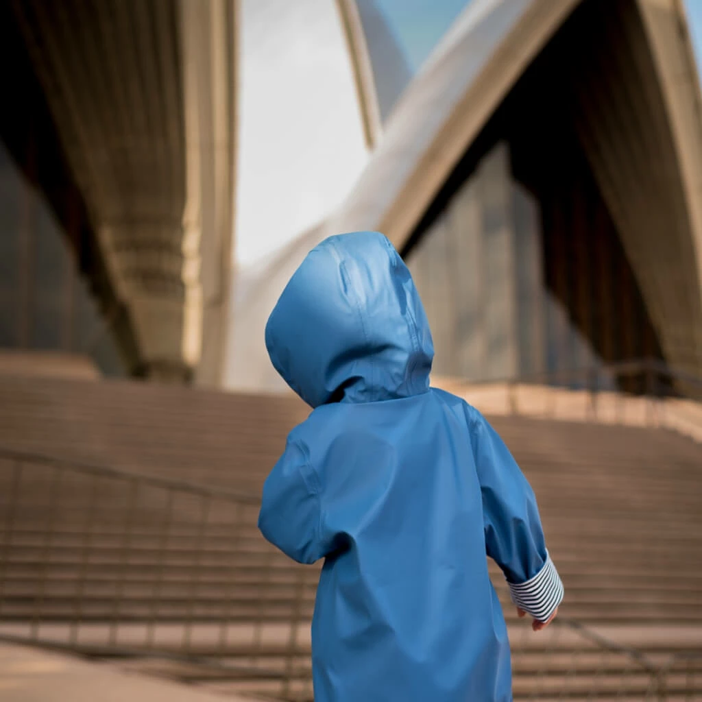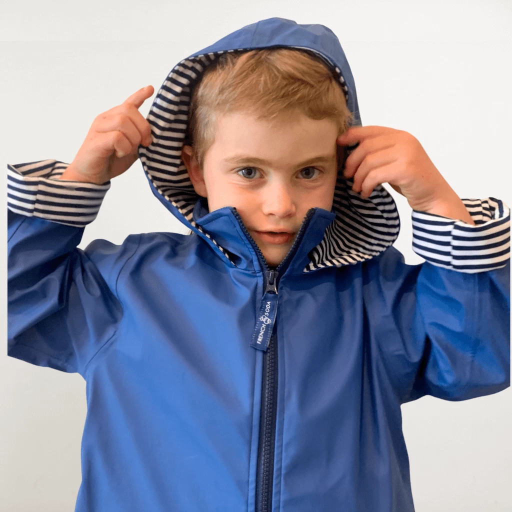 Raindrops may fall on your head, but you won’t feel blue wearing this blue raincoat. I’m your little one’s warm winter friend for adventure days and playdates. Whether you like dancing, building mud castles or hanging out with your friends at the playground, I’ll be there protecting you, come rain or shine.