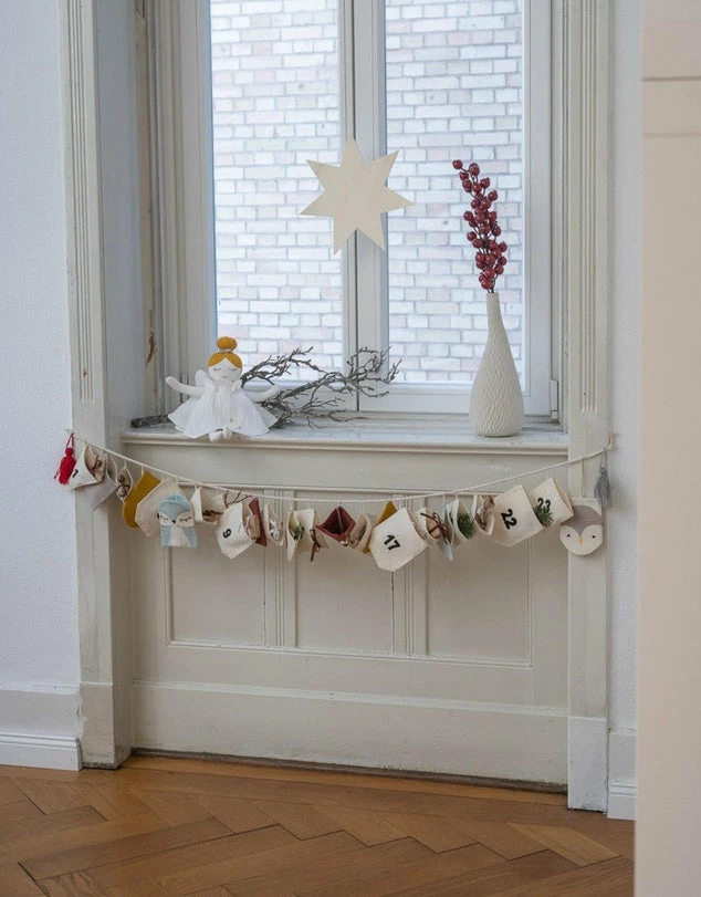 This linear style Advent Calendar Hanger by Kikadu is great for all ages, especially the little ones where height may be restricted to reach pockets.