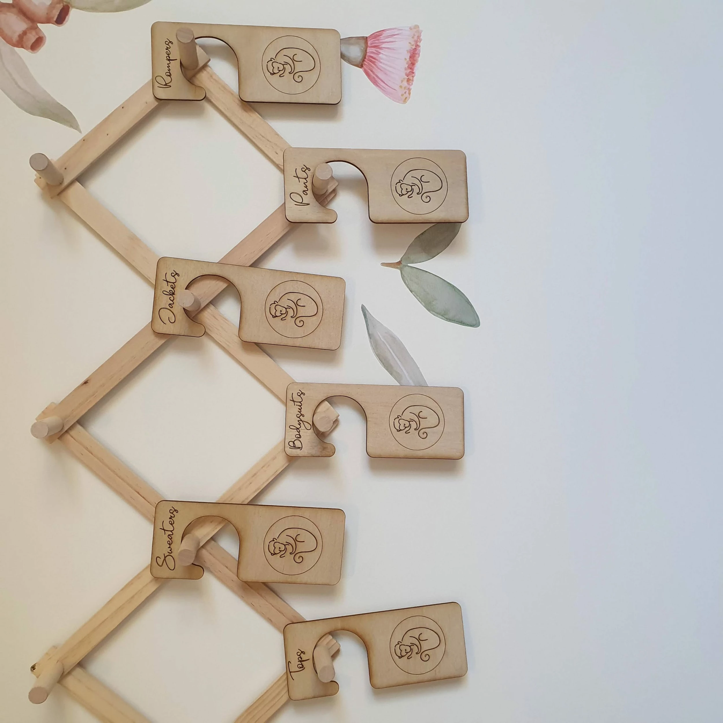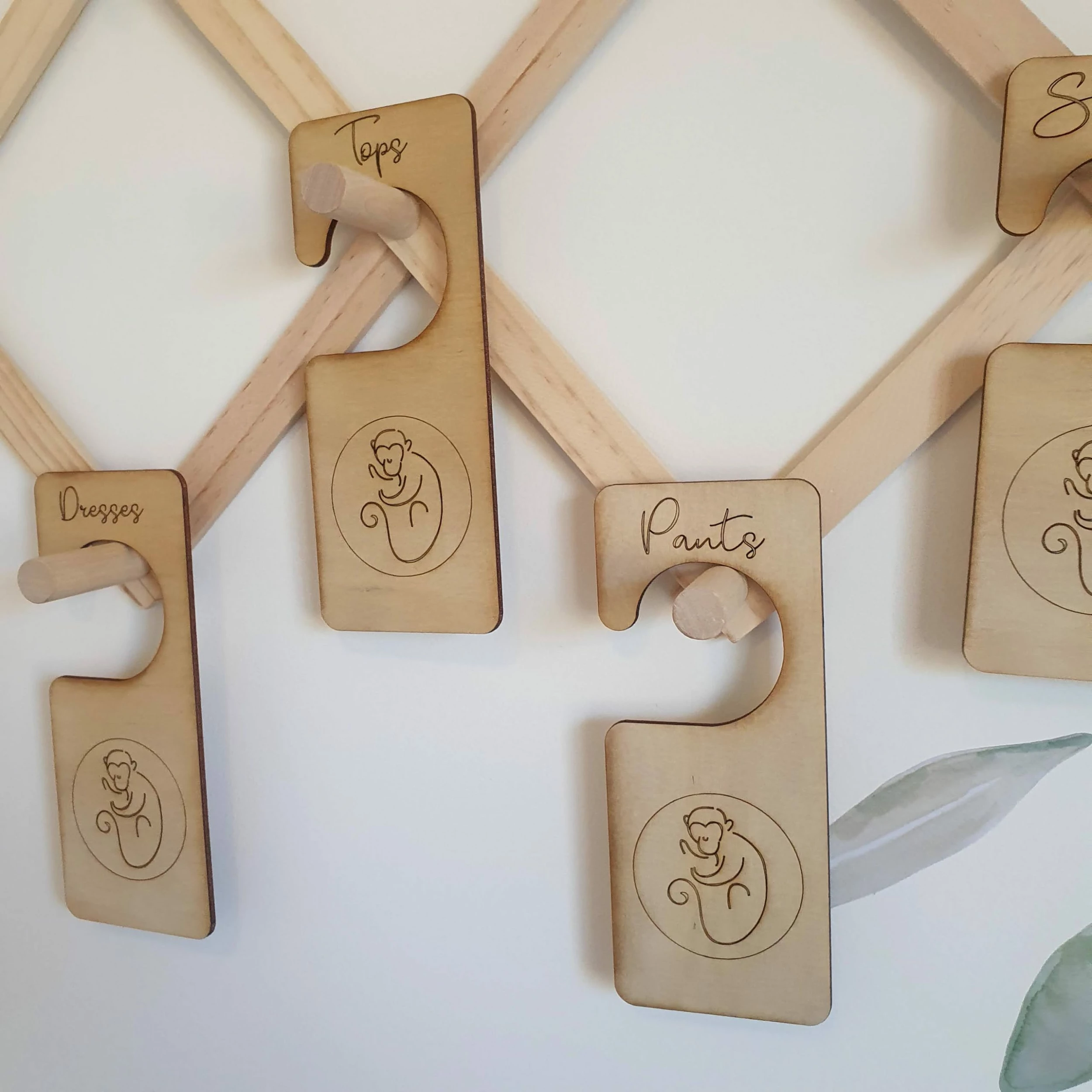 Our gorgeous wardrobe separators, branded with the Monkey Tree logo, are perfect for sorting the little ones gorgeous hanging clothes.