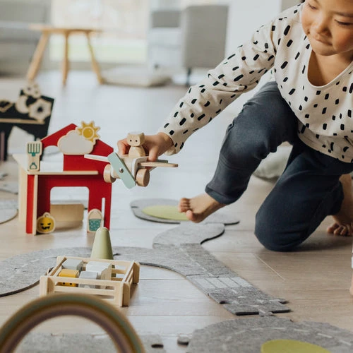 Creative and adaptable play world. With buildable walls, play mat, magnetic front walls and magnets, this set makes it easy for children of any age to engage in play that promotes their development. The simple shapes and abstract figurines make it easy to create your own fantasy world, big or small. Maybe you’ll start by creating a world with an emergency services theme but gradually your imagination will make the world develop into something totally different.