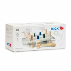 Micki’s wooden pounding bench comes with pink details made of soft linen and PVC-free plastic!