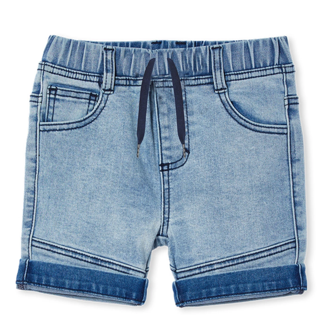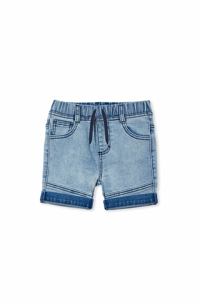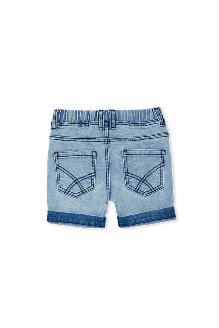 | Milky Clothing Knit Denim Short. These Denim Shorts are an essential item for every boy’s summer wardrobe. With an adjustable draw cord and fully encased elastic waistband, these shorts will be easy to pull on and off. This short has feature contrast stitching and functional pockets which will have your little one looking very trendy this summer. • Regular fit Also see our Denim Overalls in this fabric. |