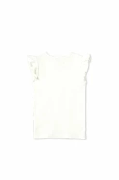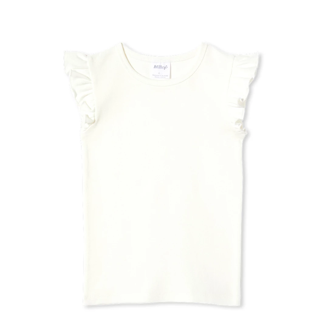 Milky Clothing Rib Tees are the perfect staple for your little ones wardrobe. This classic White Rib Tee features back neck opening with snaps for a neat fit in sizes 00-1. The short sleeves with sweet frill is an easy to wear summer piece, paired back with your favourite skirt, short or pant and can also be layered with a cardigan during the cooler weather.