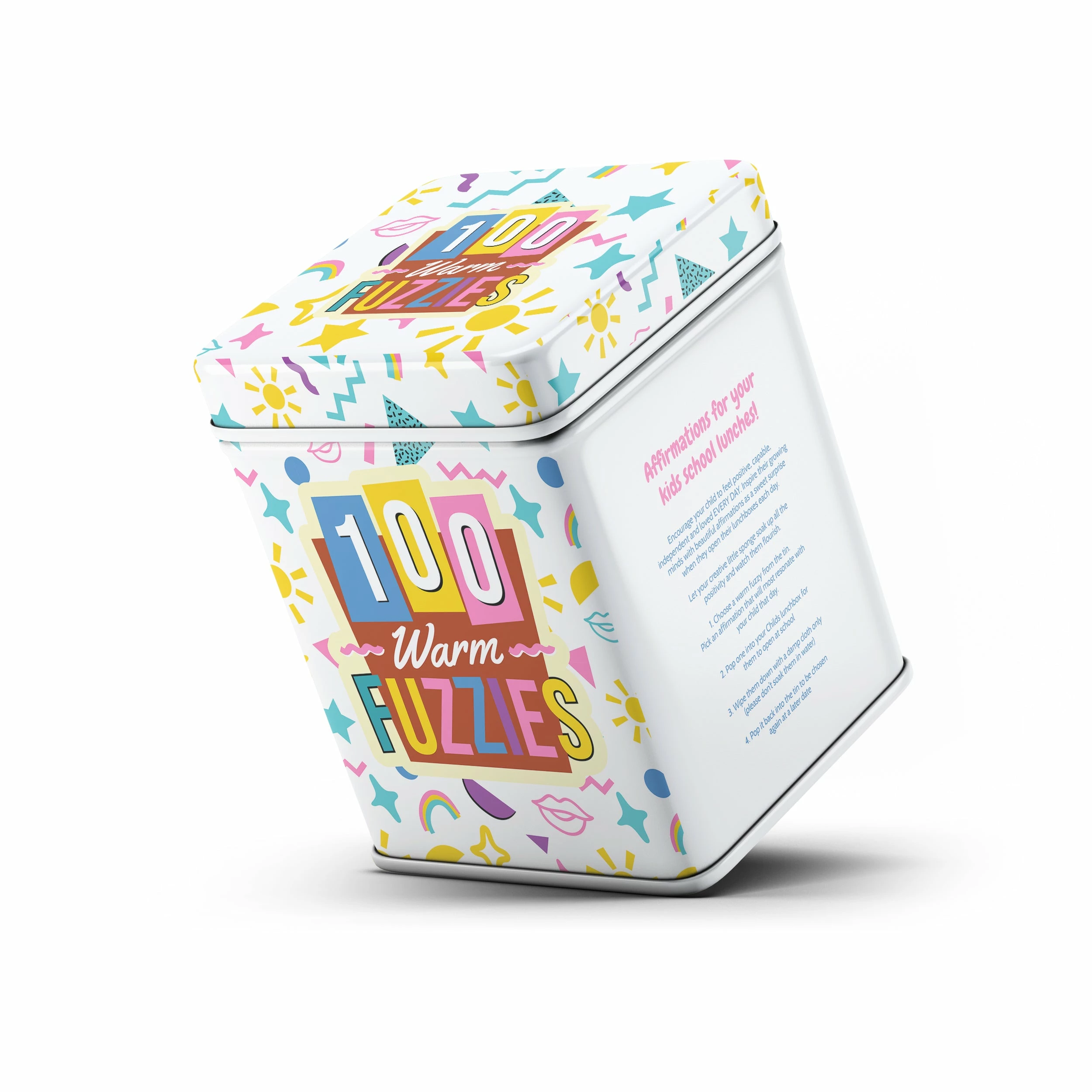 Well now you can leave love notes for all your children throughout the school year. Simply choose one of the 100 affirmations from the warm fuzzy tin, pop it on top of their food in their lunch box. When they open up their lunchbox, they will get a burst of love from the warm fuzzy you left them.