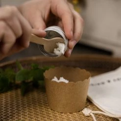 – Glass bottle of fractionated coconut oil with green mineral mica powder