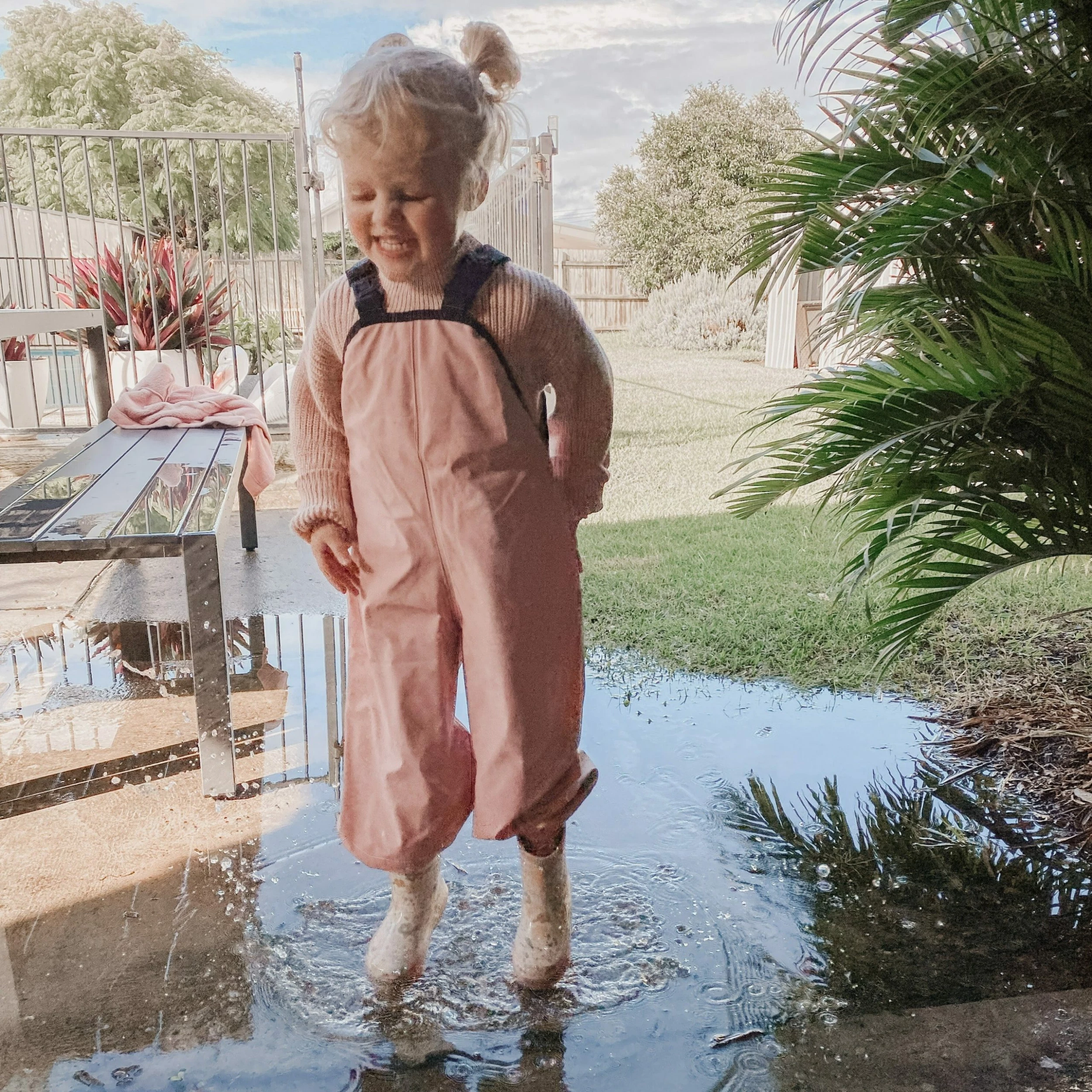 Our overalls for kids are specially designed for rainy play dates and wet weather. Just like all Rainkoat designs, our overalls are available in a wide range of colours to match their budding personality. They are lightweight, unlined, and sized to grow, so they can be worn right over the top of clothes.