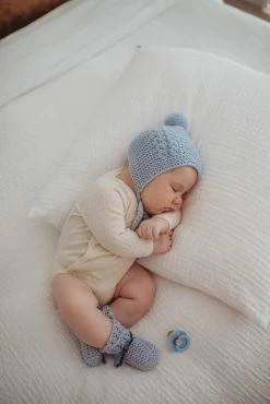 Fall in love with our handknit soft and snuggly Blue Merino Wool Bonnet & Bootie Set. Handknit heirloom quality made from 100% Merino Wool.