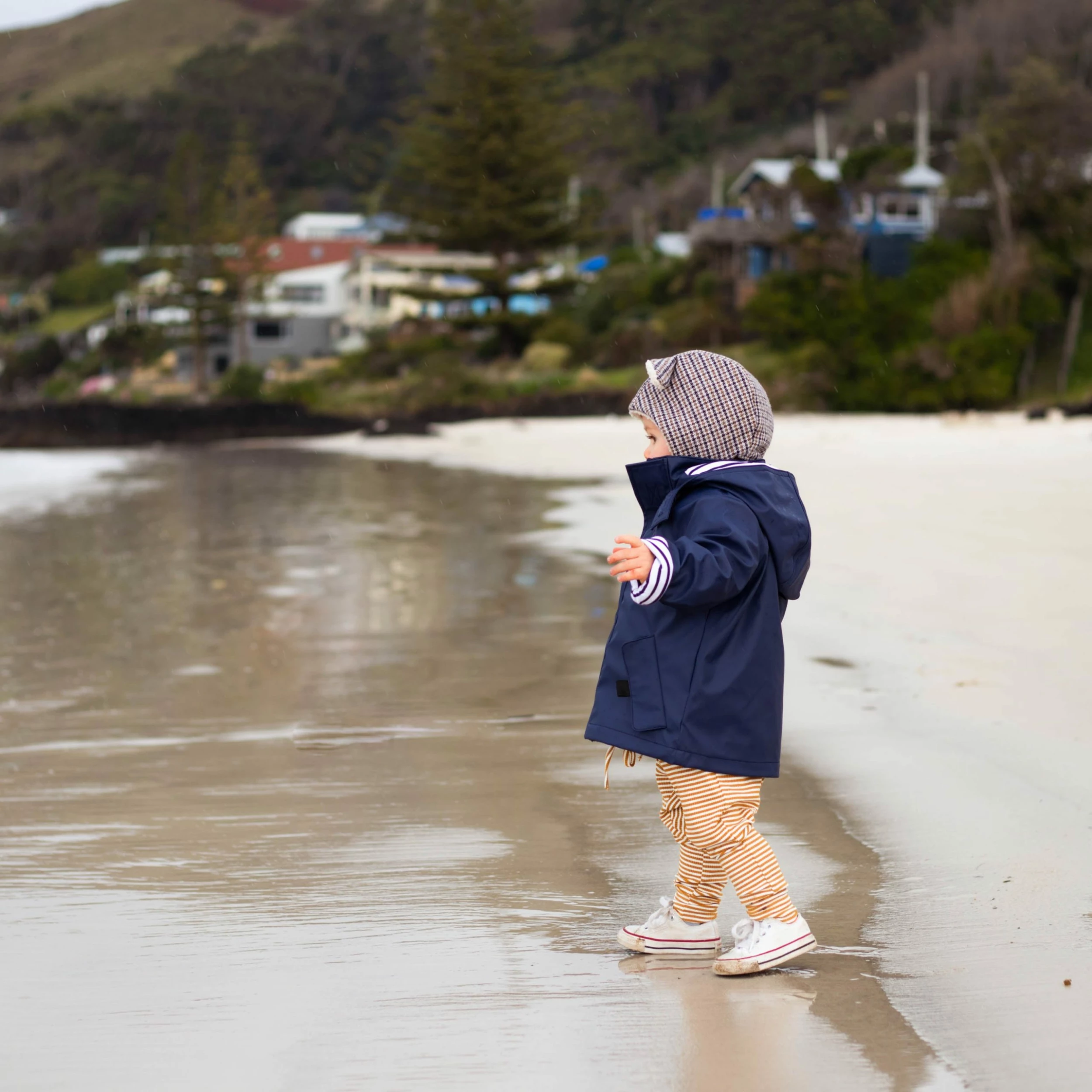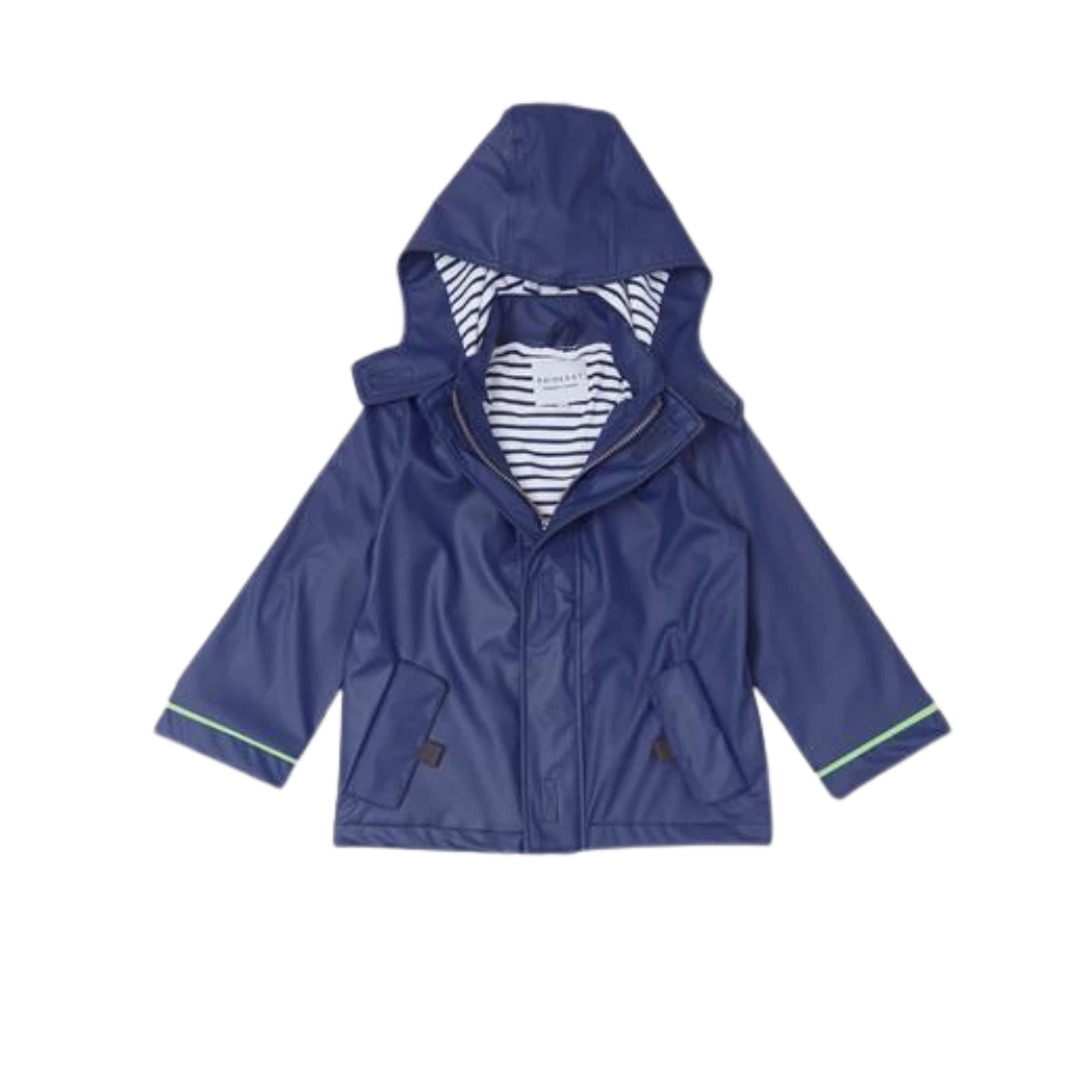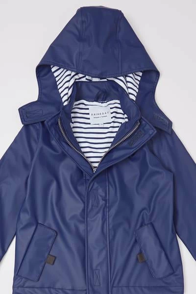 Splash in style with the eye-catching Stripy Sailor Rainkoat. Every little rainy-day explorer needs a coat that they can count on with welded seams to keep them extra dry. The jacket and cosy hood are lined with soft, 100% cotton material in a charming nautical blue and white stripe. Try rolling the sleeves for a peek at the print inside!