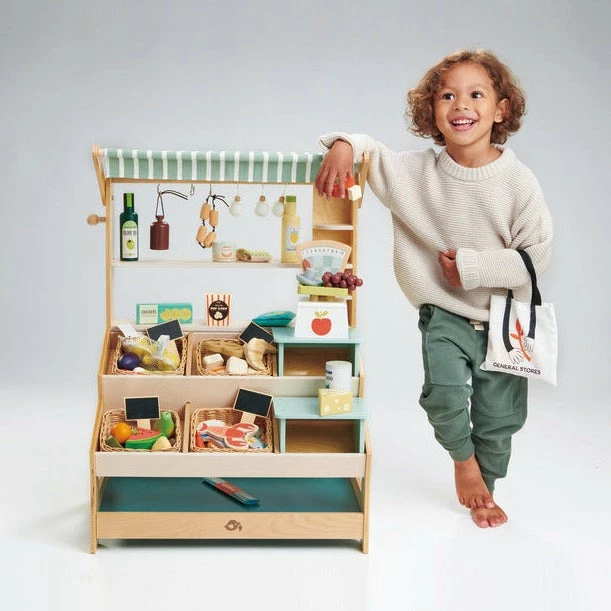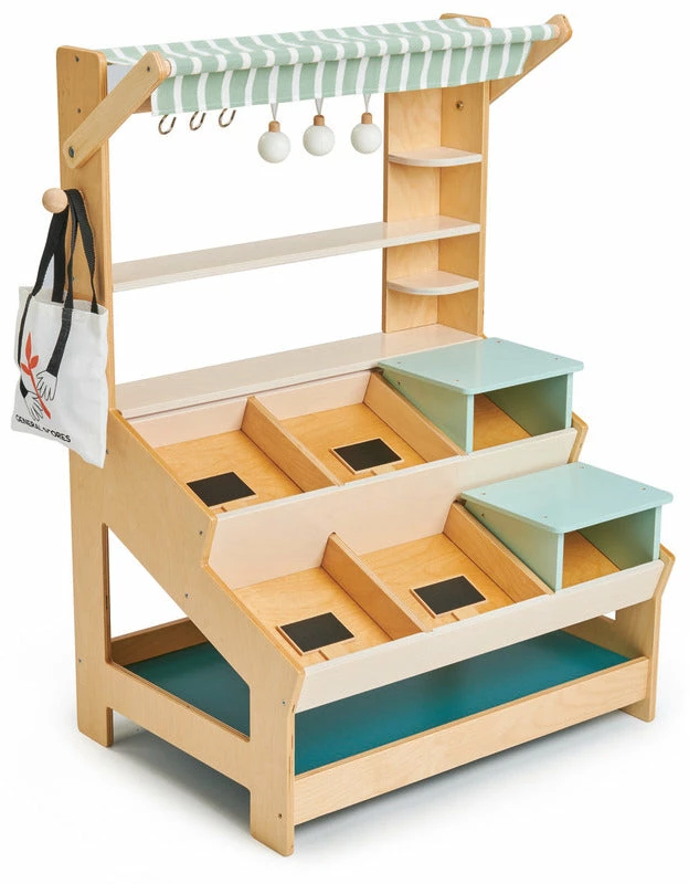 A wonderfully social and open-ended role play item that is sure to be the perfect piece in a playroom. Don’t forget to fill the market with wooden play produce from the Tender Leaf Toys range.