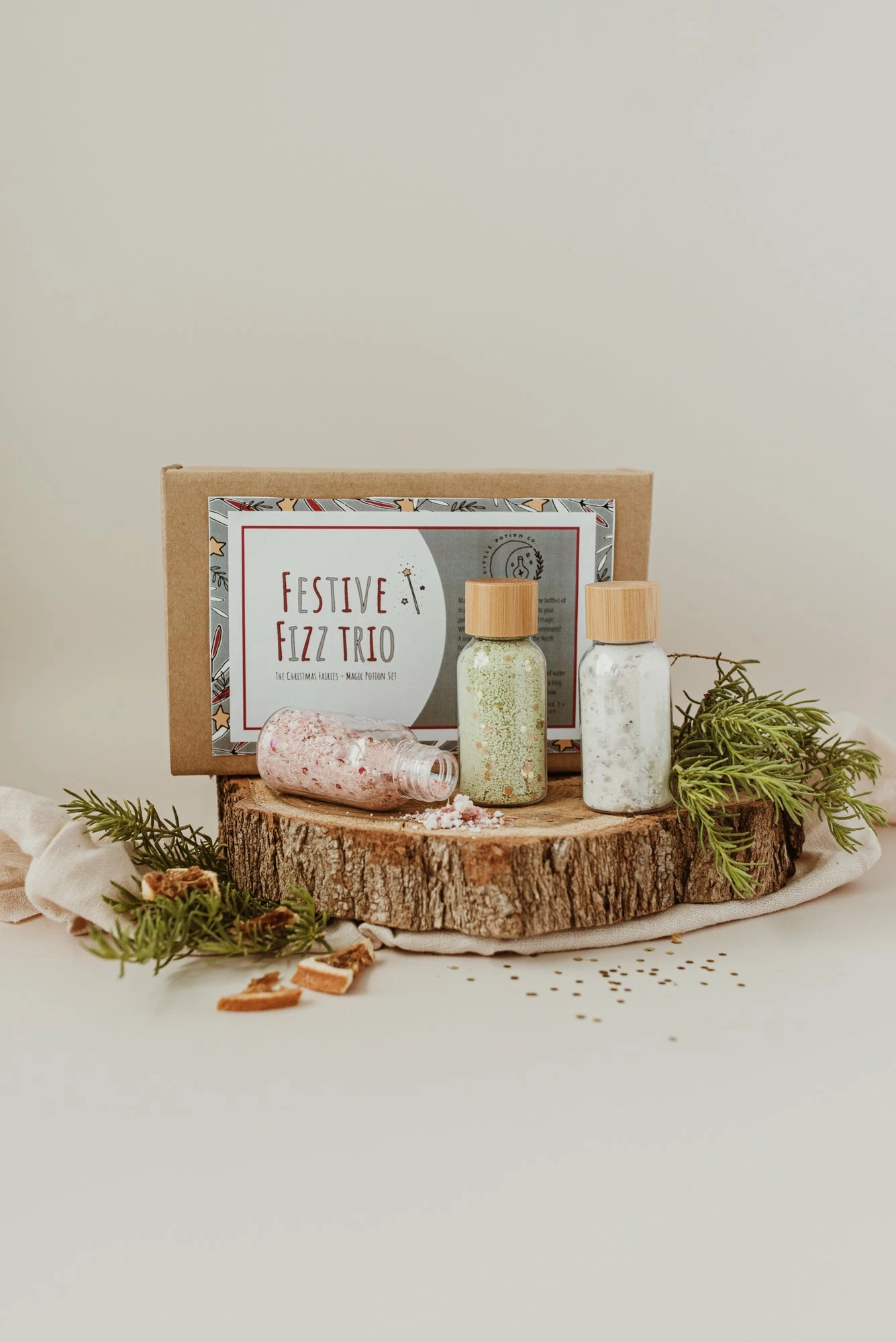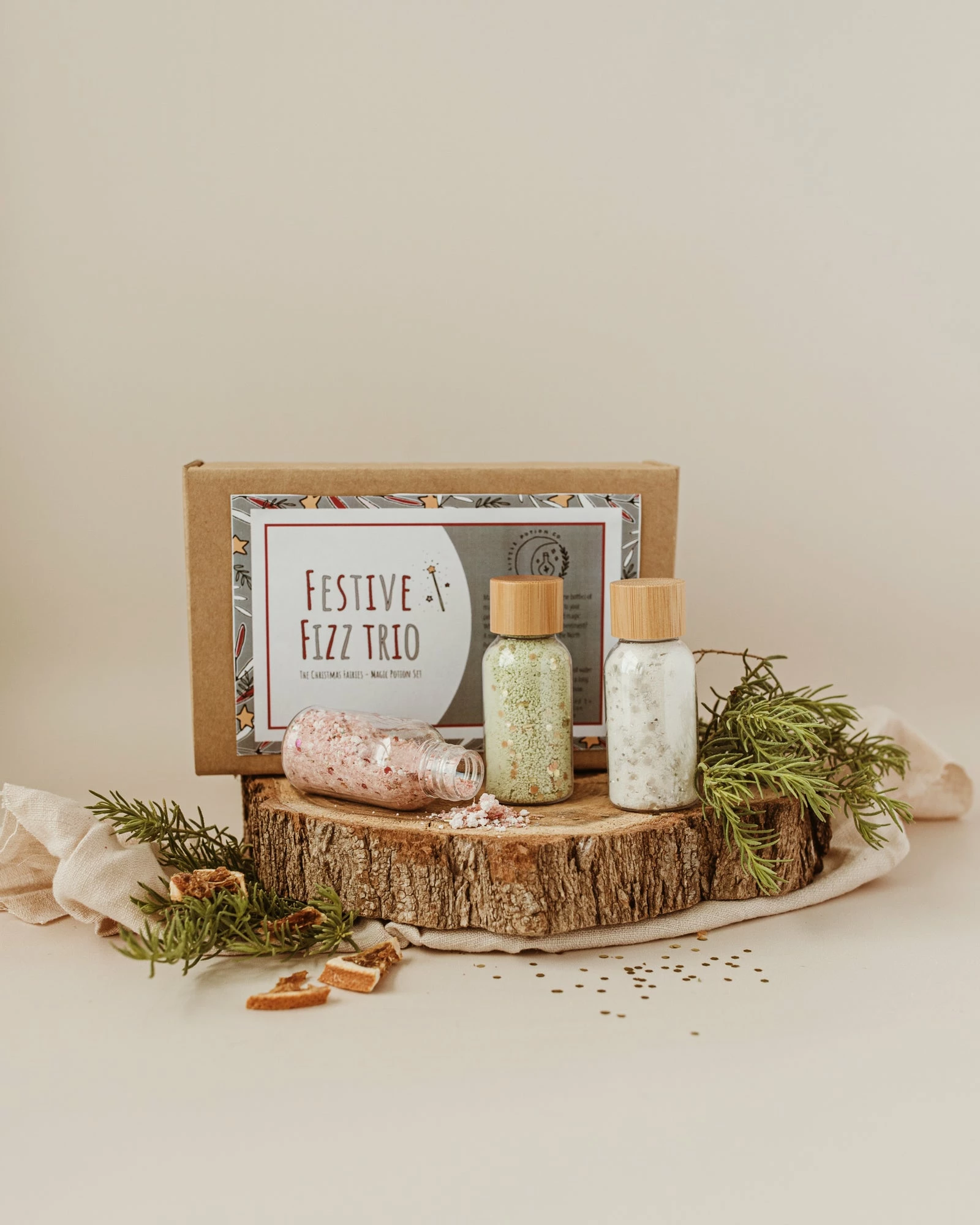* Festive Elf 30ml PET plastic with a bamboo cap: Fizz ingredient to create a potion to bring in the festive season. You could even drop some potion on your letter to Santa for extra magic.