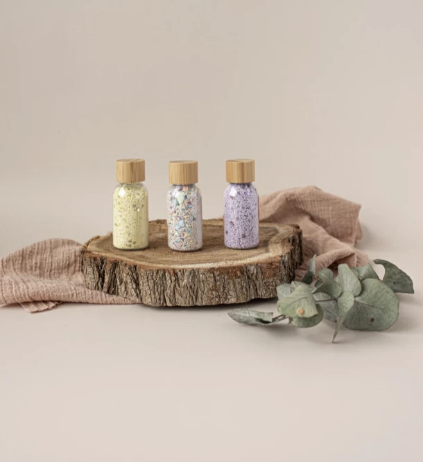 Ingredients: bicarb, citric acid, food dye, mica and bio glitter