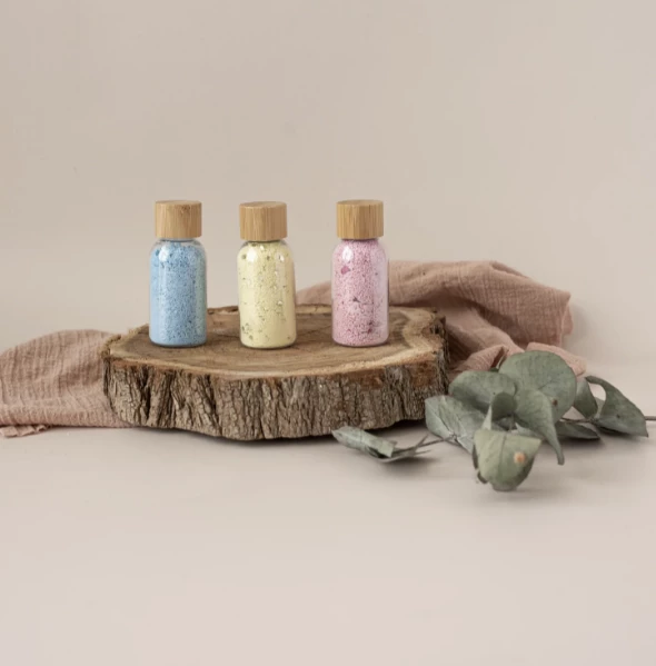 Ingredients: bicarb, citric acid, food dye, mica and bio glitter