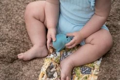 A gorgeous little blue bird that will fly into your little one’s heart. This all-rubber teether is great for little hands to grab and squeeze. Features a little bell that rattles inside to delight and entertains little ones. Babies will love flying the bird through the air and relieving sore gums on its textured tail wings.