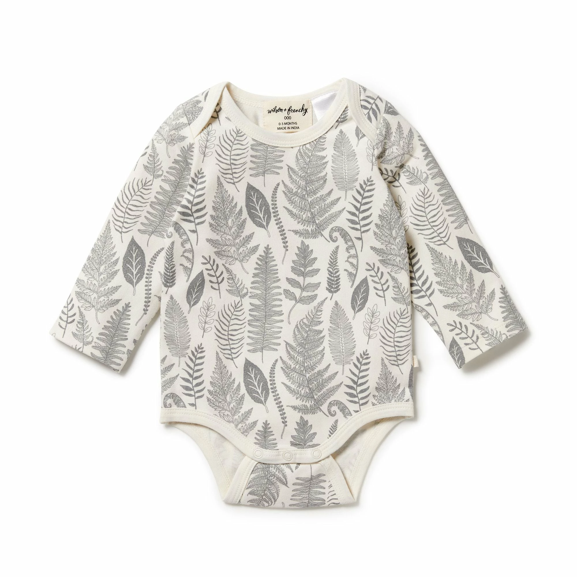 This long sleeve bodysuit features a hand-illustrated all over print, envelope neckline and has a snap leg opening for quick and easy nappy changes.