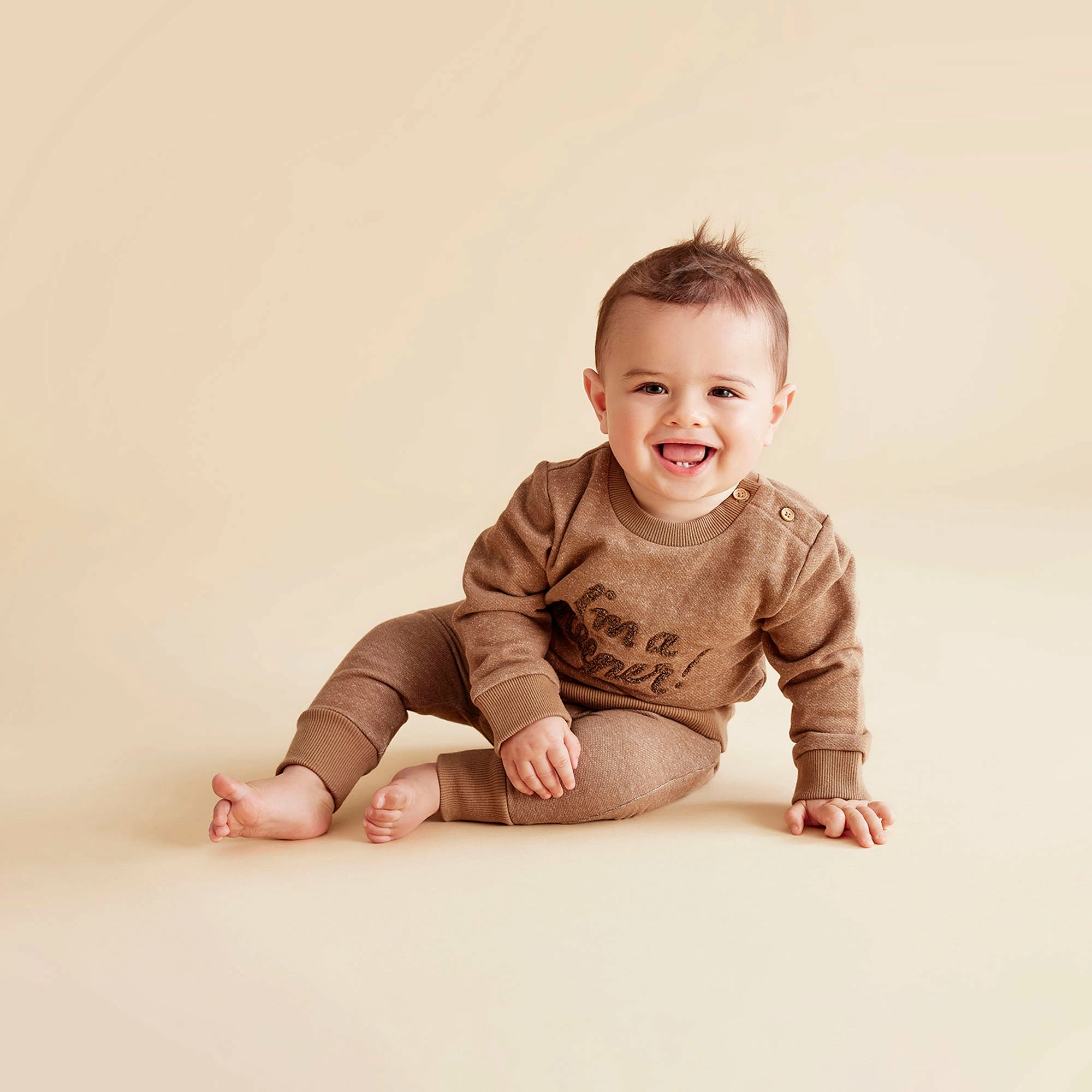 Made from 100% organic cotton, this digitally printed French terry sweat is soft washed for a softer touch on baby’s skin .