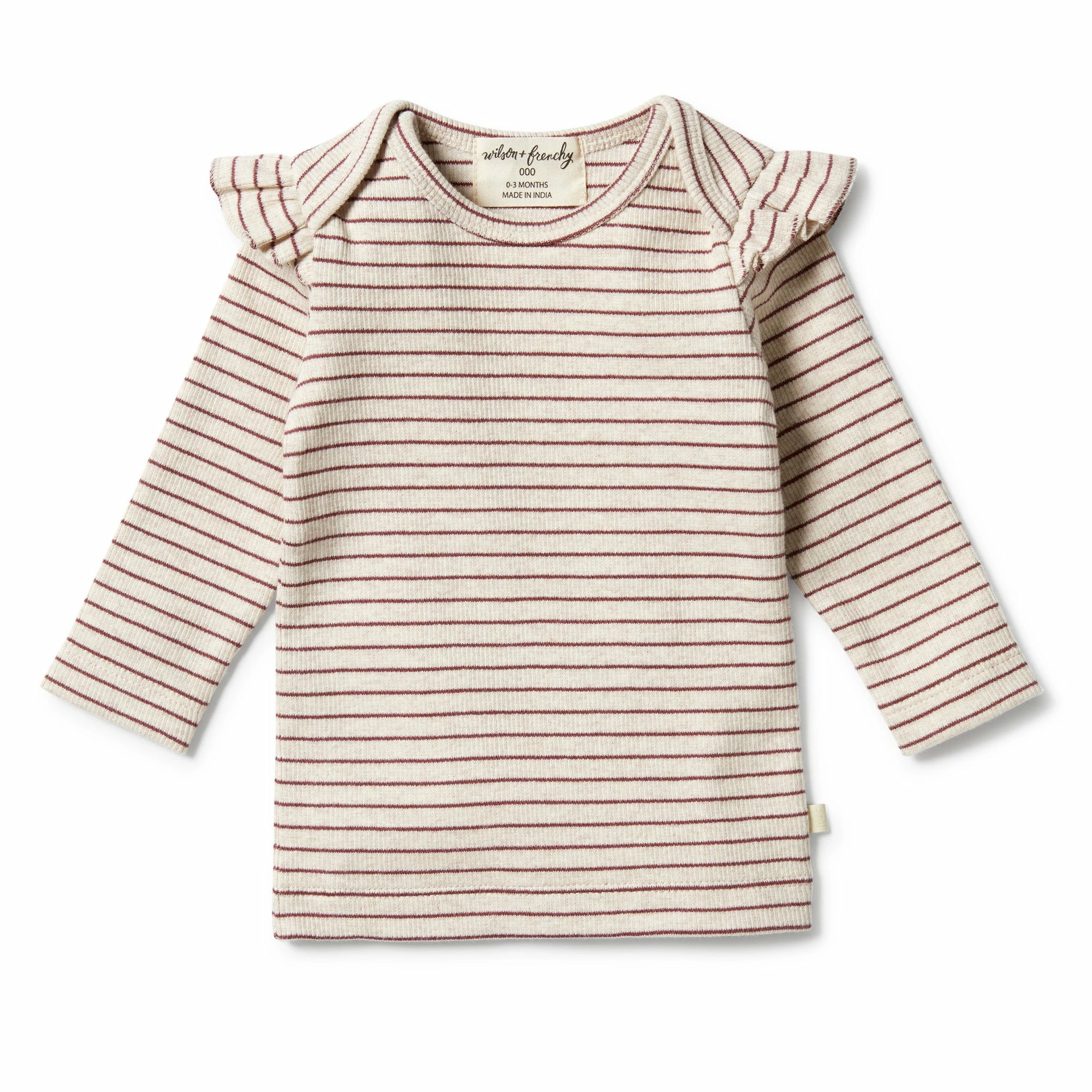 Gentle on skin, this long sleeve rib top is a great everyday layer for cooler days. Easy to mix and match, this stretch rib basic features a super cute shoulder ruffle and an envelope neckline for quick and easy changes.